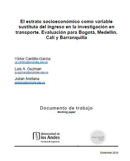 (2019) El estrato socioeconómico como variable sustituta del ingreso en la investigación en transporte. Evaluación para Bogotá, Medellín, Cali y Barranquilla.